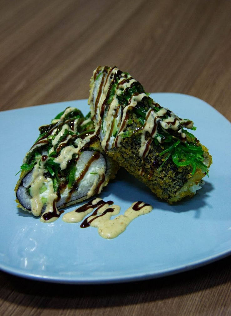 сыр, огурец, угорь, салат Чука, соус унаги гамадари